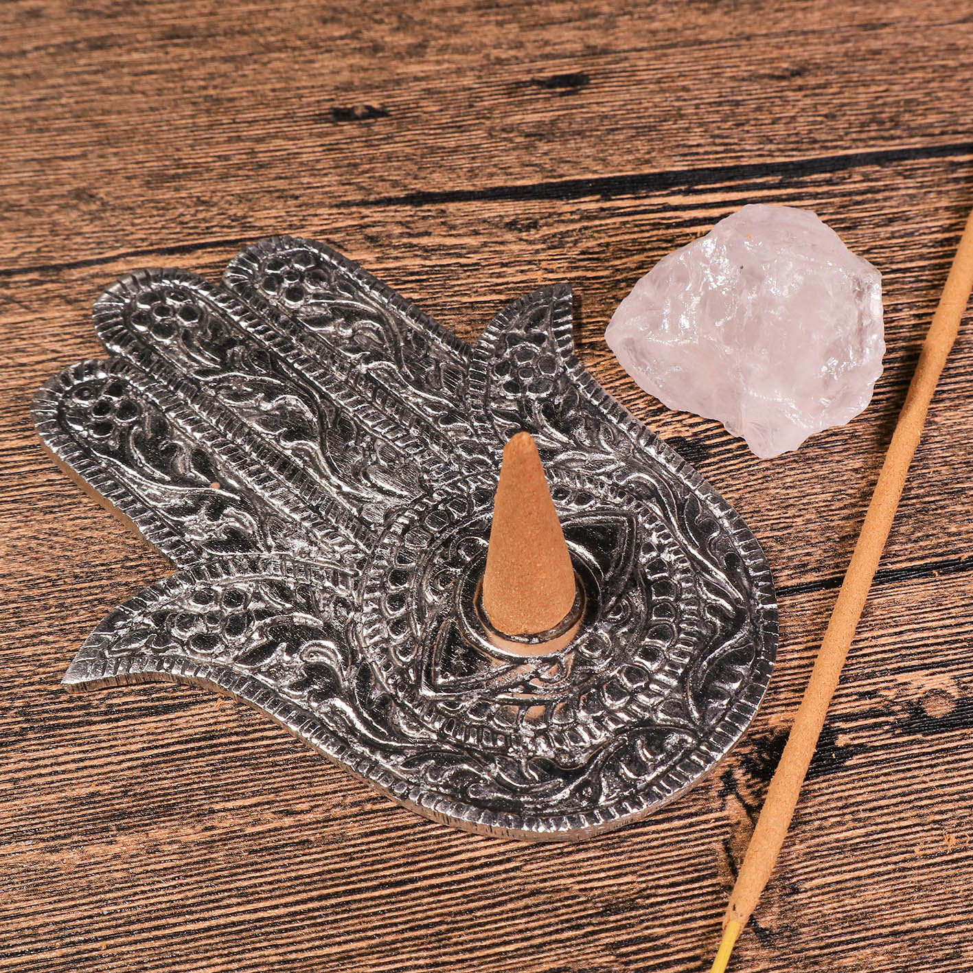 法蒂瑪之手在許多文化中被視為具有保護力量的護身符,能抵禦邪惡之眼,帶來好運、幸福、和豐盛。將線香置於法蒂瑪之手上,點燃後,看著裊裊香煙升起,感受神聖之手的庇佑,為您的空間帶來祥和與寧靜。