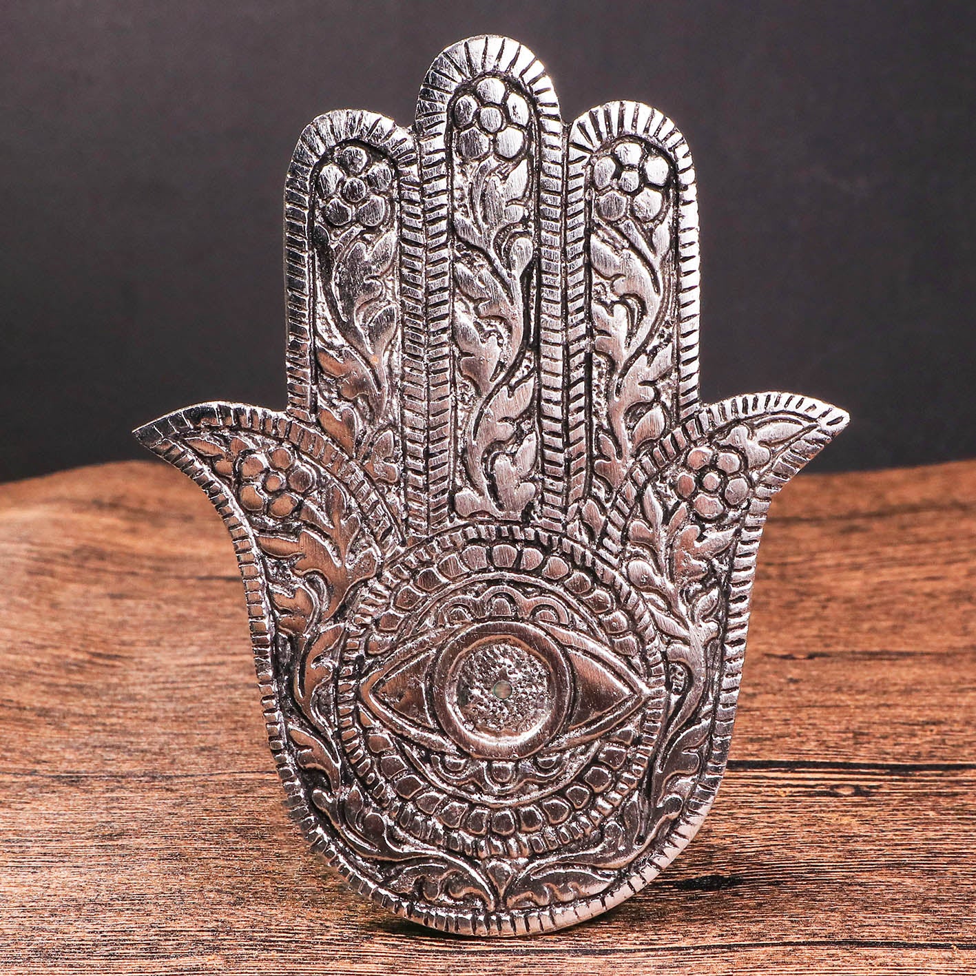 Hamsa Hand Engraved Copper Incense Holder