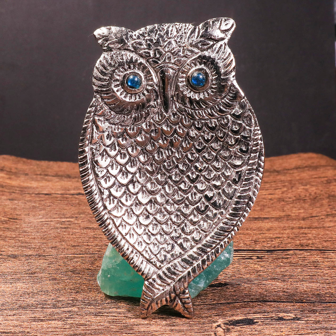 這款貓頭鷹雕花銅製線香座,以充滿智慧與神秘感的貓頭鷹造型,為您的香氛儀式增添一份獨特的靈性氛圍。線香座採用優質銅材製成,表面經過精細的雕刻和打磨,呈現出古樸而精緻的質感。貓頭鷹的眼睛鑲嵌著藍色寶石,為整體造型增添了一抹亮色,更象徵著智慧之光。