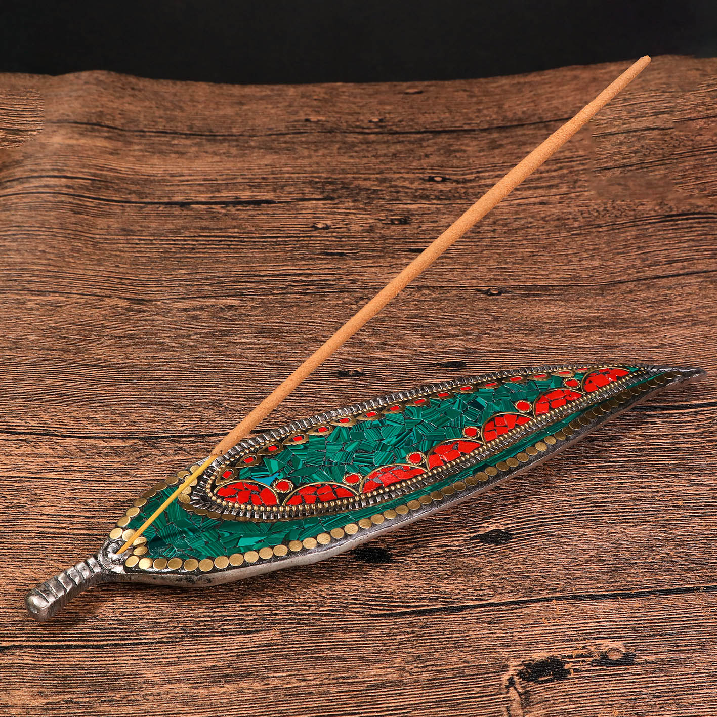 孔雀石珊瑚鑲嵌葉形線香座